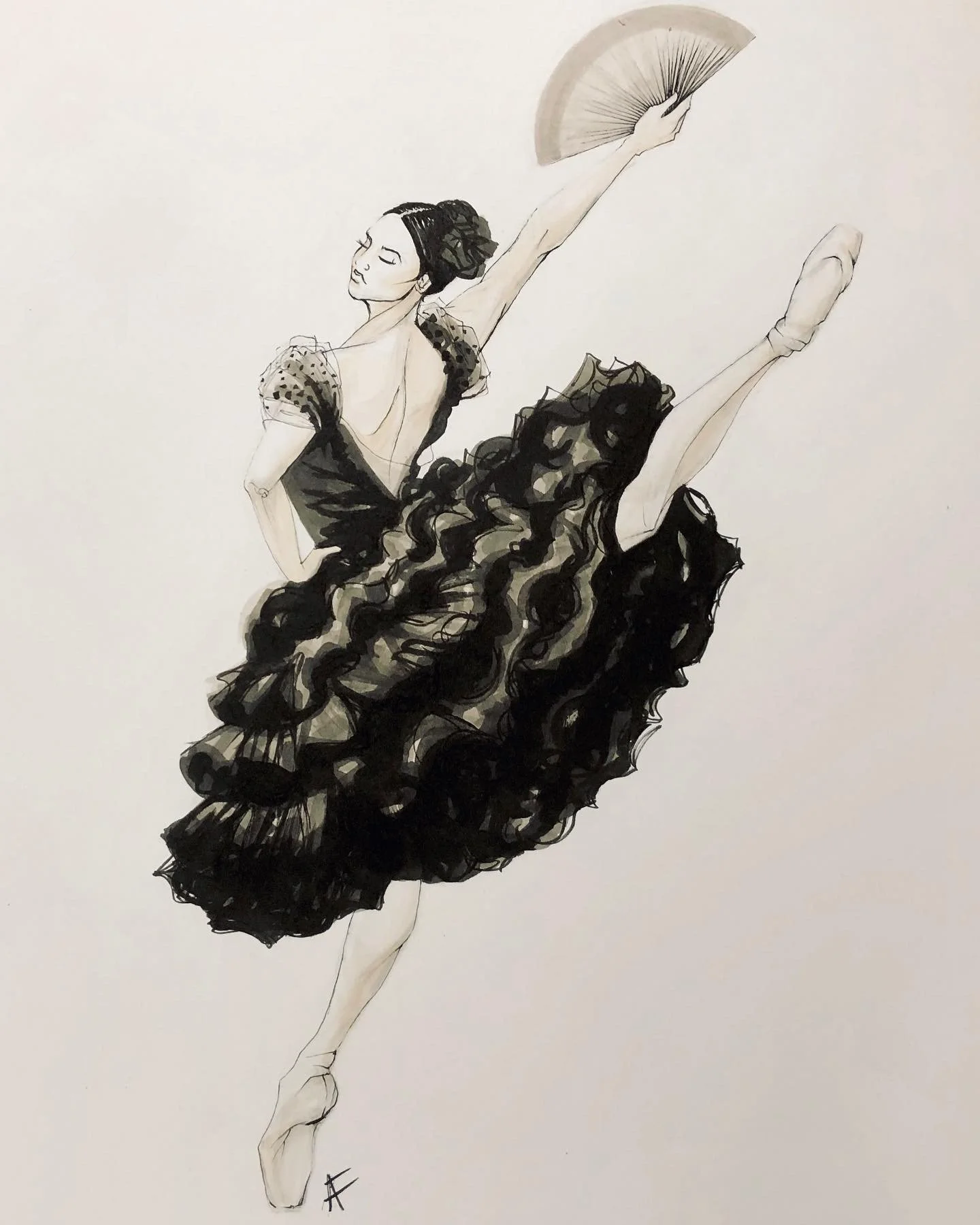 "Dance has greatly influenced my life and visual artwork. When I was training in ballet, I would bring a sketchpad to rehearsal. Through closer observation, I learned so much about what made this performing art form so incredible. Not only were my drawing skills improved, but my own dancing as well. I realized that in order to appear graceful, a dancer must be incredibly strong in body and in mind. This is what I seek to communicate in my work to this day through different styles of drawing, and with varying mediums.